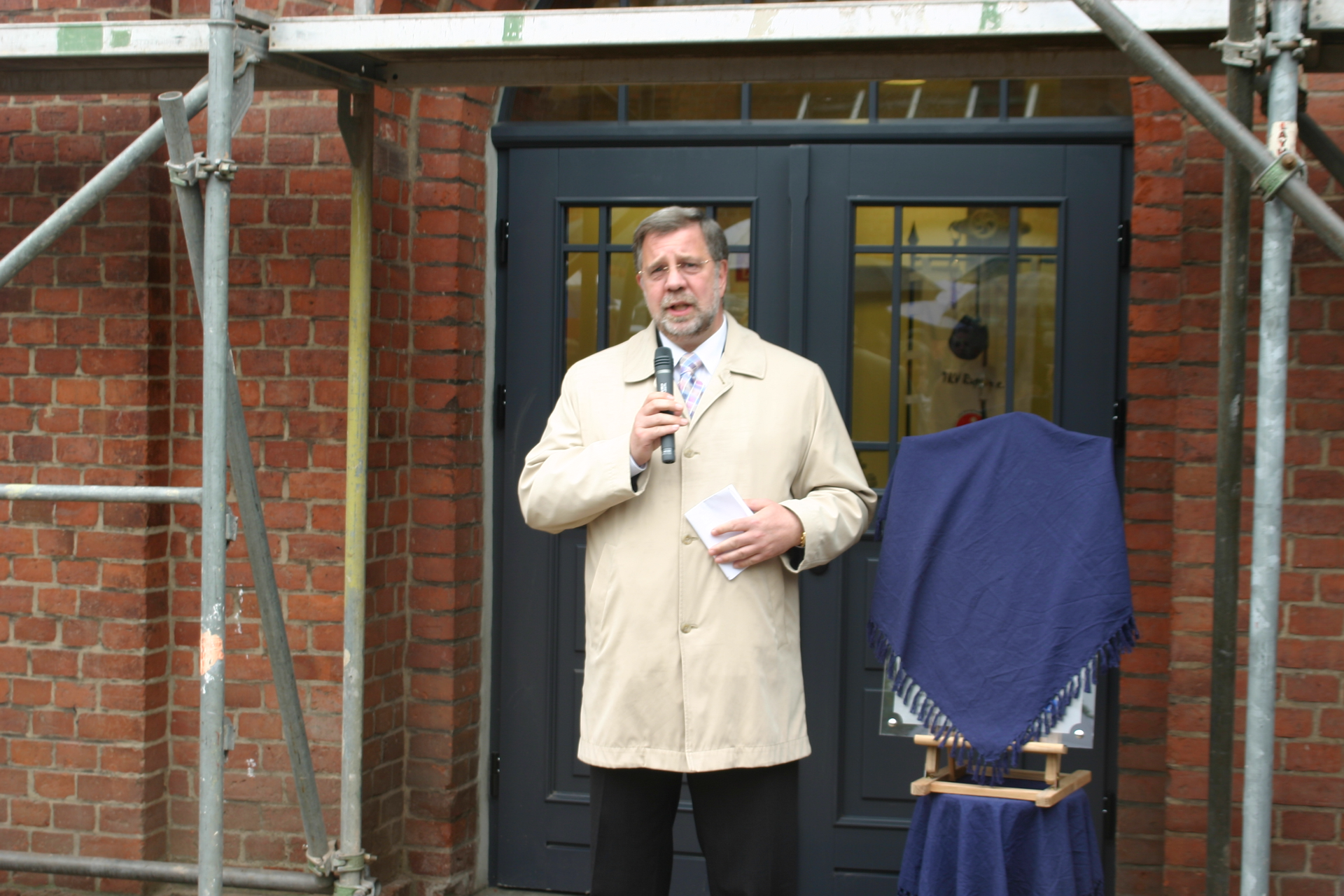 Schlüsselübergabe von den Stadtwerken (Herr Zindler und Herr Lenz, Frau Supke von der Fontanestadt), Bürgermeister Herr Golde gibt den Startschuss. Der Turm wird auf den Namen "Wichmannleiter" getauft.